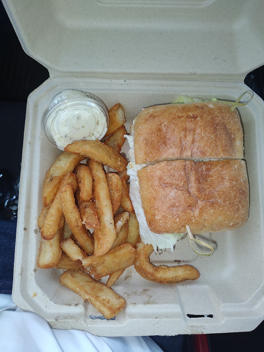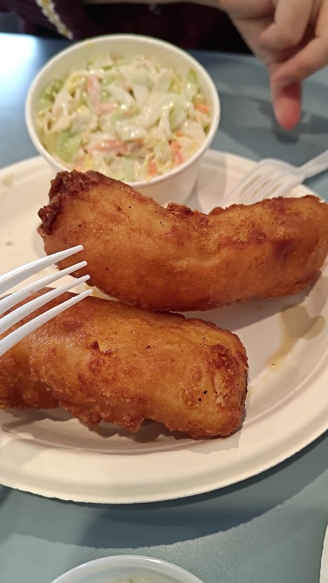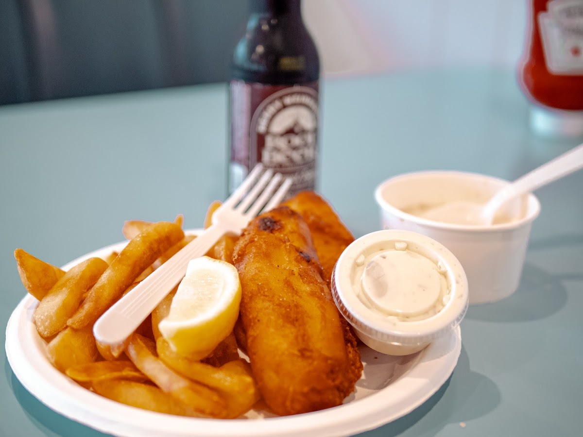 Ordered cod fish and chips and clam chowder for takeout. Service was fast and friendly. Portion sizes for the fish were pretty big for the price. The cod was nicely battered, perfectly crunchy on the outside and flaky on the inside. Was also a big fan of the tartar sauce. The clam chowder was decent. Would recommend overall.